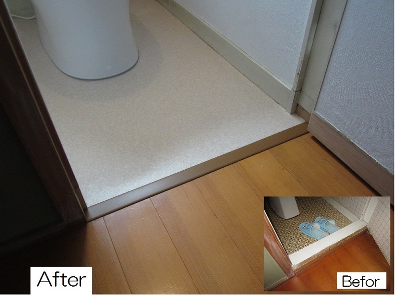 トイレ入口 バリアフリー工事(敷居の撤去)